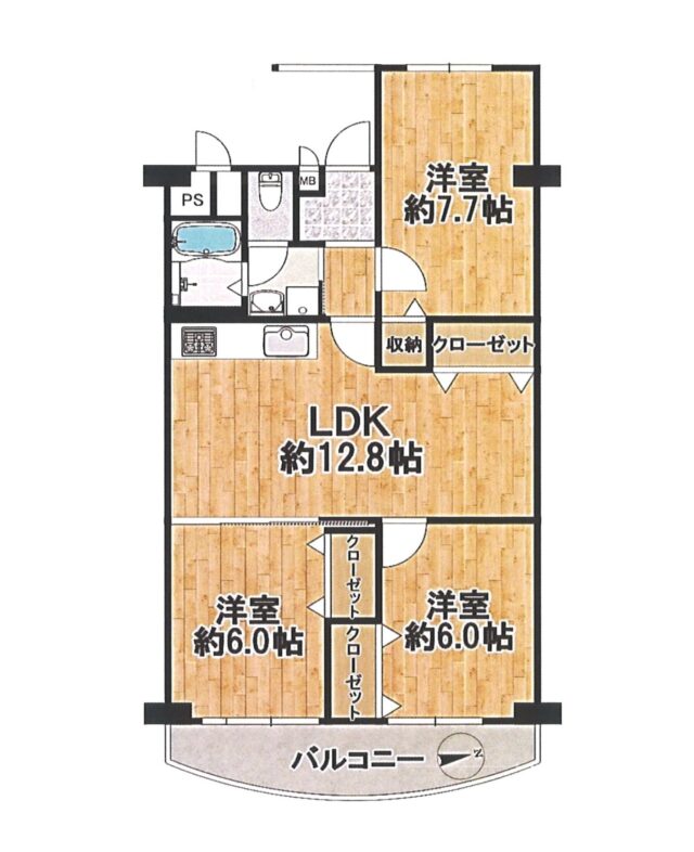間取内容 LDK12.8畳   洋室7.7畳   洋室6畳   洋室6畳